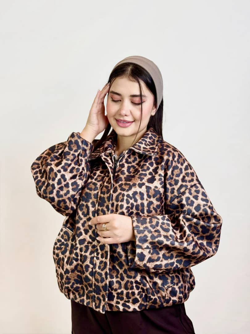خانه مانتو (کت- پانچو) کاپشن بامبر پلنگی کد 1089